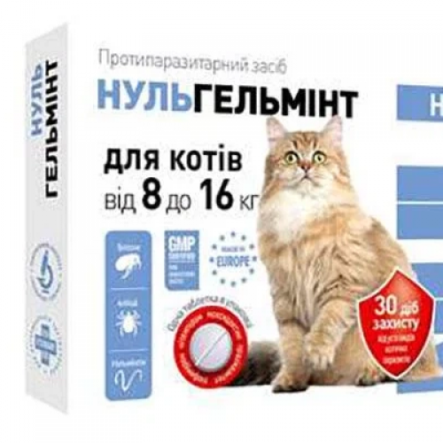 НульГельмінт для котів 8-16 кг — від бліх,кліщів та гельмінтів