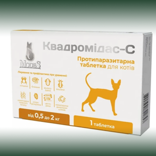 Квадромідас для котів 0,5-2 кг — протипаразитарні таблетки для котів 0,5-2 кг, 0,2г, 1 табл MODES (від бліх, кліщів, гельмінтів)